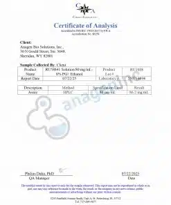 We at anageninc provide this compound in a unique stable route of synthesis form which is extremely stable in solid and solution form which has been demonstrated by our R&D laboratory. The results are very encouraging which shows that the current anageninc route of synthesis is stable for at least 24 months at room temperature.